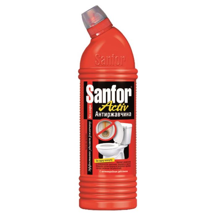 Sanfor WC Gel Аctive эффективно борется с ржавчиной и другими сложными загрязнениями в ванной комнате и туалете. Улучшенная формула позволяет достигать идеального результата без длительного выдерживания. Для достижения положительного результата достаточно 1 минуты.