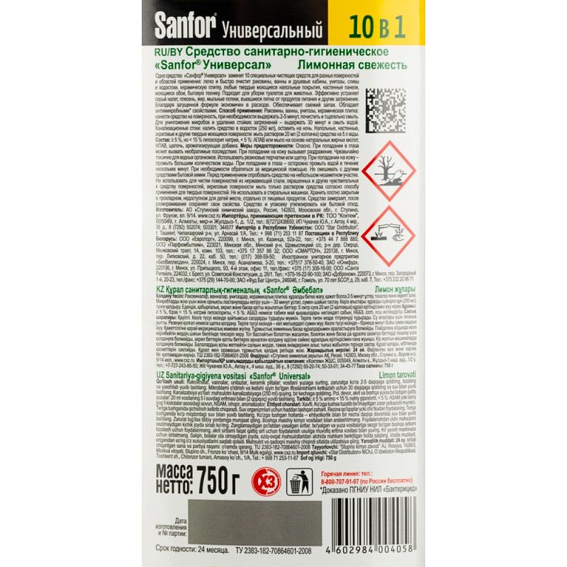 Средство чистящее для сантехники "Sanfor Универсал", 750 мл, лимонная свежесть
