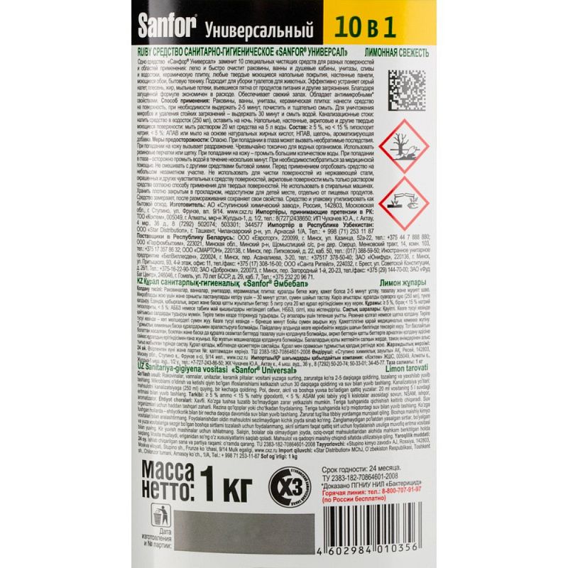 Средство чистящее для сантехники "Sanfor Универсал Лимонная свежесть", 1000 мл