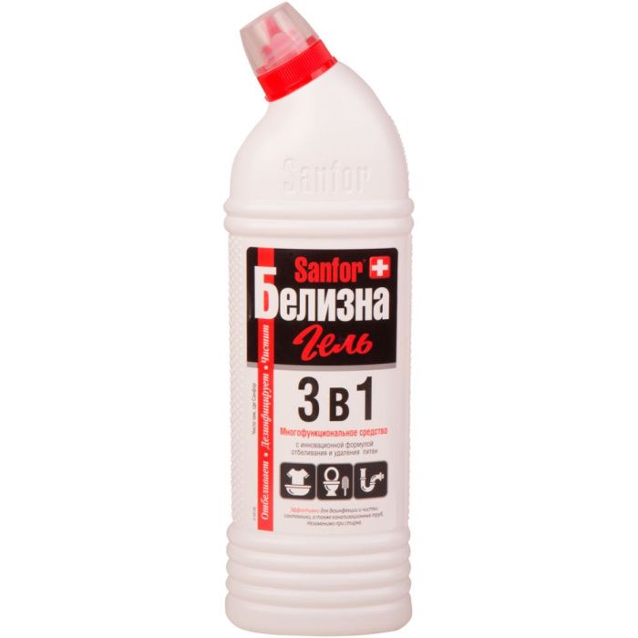Sanfor «Белизна 3 в 1» — специальное густое средство с инновационной формулой отбеливания и удаления пятен. Благодаря комплексному действию незаменимо при стирке, а также для дезинфекции и чистки сантехники и труб.