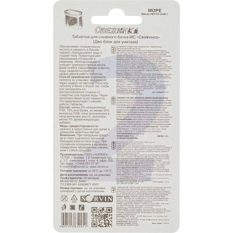 Таблетка для сливного бачка Свежинка Море 40 г 2 штуки в упаковке.