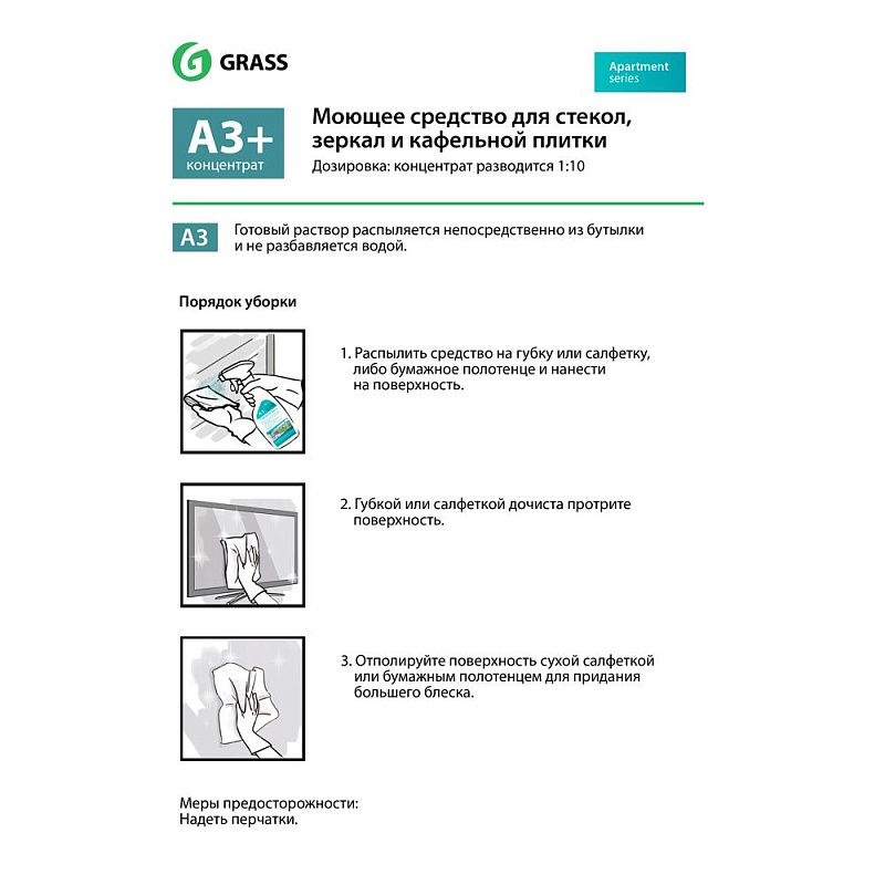 Моющее средство для стекол, зеркал, пластика и хрома, изделий из хрусталя, керамики и фарфора. Может применяться для чистки экрана монитора и телевизора, корпусной мебели и стеклянных витрин. Придает поверхности антистатические свойства. Не оставляет царапин, обеспечивает максимальную прозрачность без разводов и потеков. Экономично в применении.