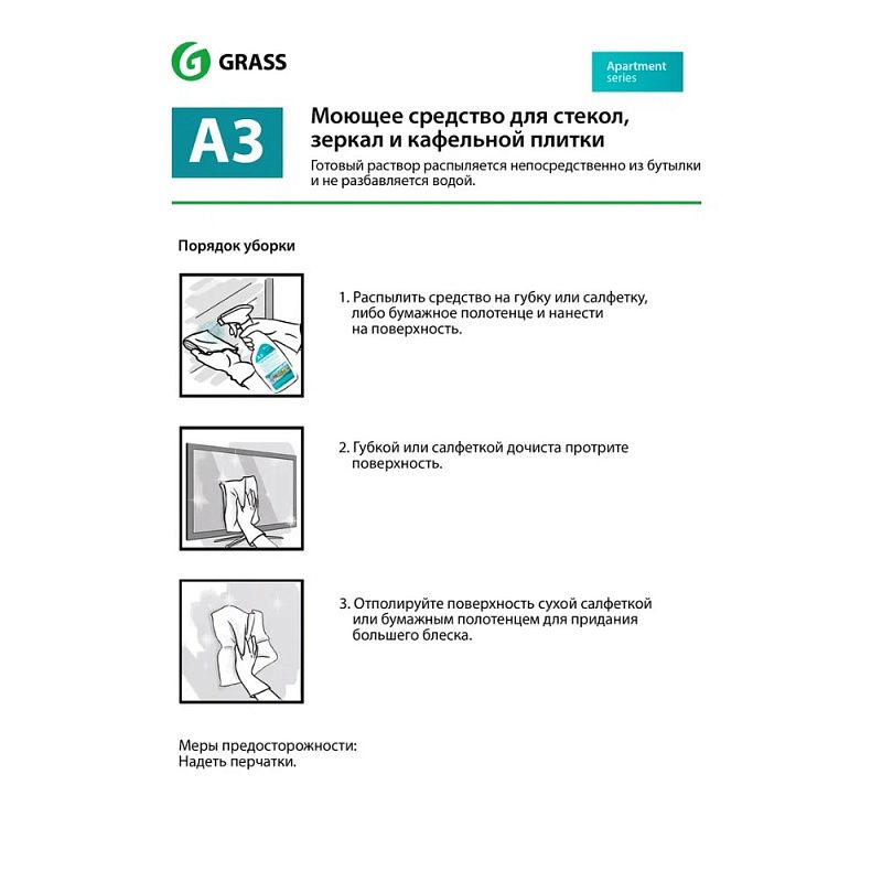 Средство моющее для стекол и зеркал "Apartment Series А3"