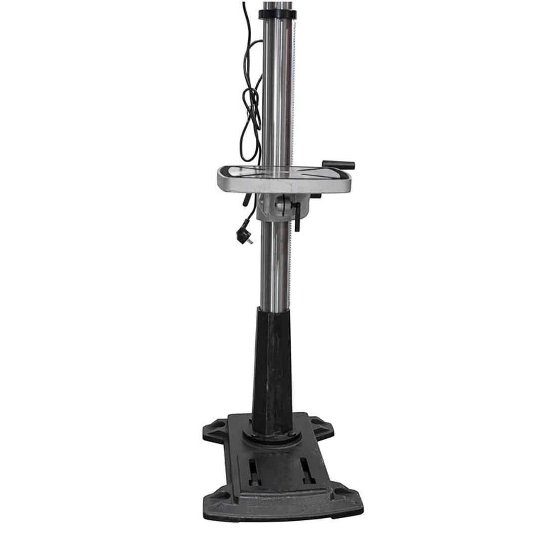 Профессиональный станок предназначенный для точного сверления отверстий в различных материалах: дерево, металл, пластик и другие. Изготовлен из качественного твердого чугуна с прецизионными электронными компонентами; высокая прочность и твердость, защита от ржавчины и окисления с очень тяжелым нескользящим основанием. Конструкция состоит из: подошва, столешница, стойка, быстрозажимной сверлильный патрон, конус Морзе, двигатель, ручка опускающая патрон, защитный кожух. Оснащен защитным экраном (щитом), аварийной кнопкой для отключения станка в экстренных случаях, возможность отрегулировать люфт пиноля. Напряжение: 220 В. Мощность: 750 Вт. Диапазон скорости вращения: 260-3000 оборотов в минуту. Диаметр сверла: 3-16 мм. 12 скоростных режимов. Станок может применяться в производстве и ремонте металлических конструкций, столярном деле. Металлорежущий станок позволяет сверлить точные глухие и сквозные отверстия в металле различной толщины для монтажа крепежных элементов, соединений или для создания отверстий под резьбовые соединения. При мебельном производстве для сверления отверстий в деревянных изделиях. Он позволяет создавать отверстия для соединения элементов, установки фурнитуры и монтажа других деталей. В комплект входит: клин выколотка, г-образные ключи, вороток для сборки конструкции.Преимущества работы с нами