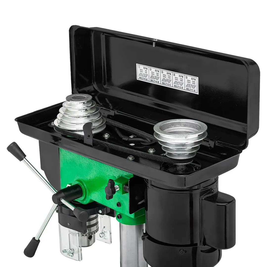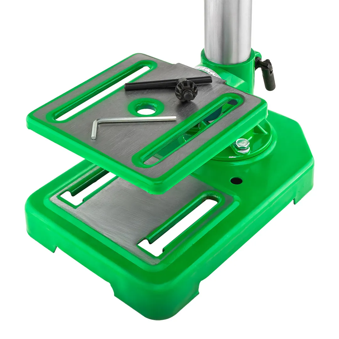 Станок сверлильный настольный. Изготовлен из качественного твердого чугуна с прецизионными электронными компонентами; высокая прочность и твердость, защита от ржавчины и окисления с очень тяжелым нескользящим основанием. Вся конструкция чрезвычайно прочная и стабильная, обладает высокой устойчивостью к вибрации и ударам, низким уровнем шума при работе, долговечна и рассчитана на долгий срок службы. Гибкое использование: высота платформы и угол наклона стола этого сверлильного верстака регулируются влево и вправо (0 -45) градусов. Регулируемая высота и углы позволяют легко сверлить различные типы отверстий. Широкое применение: идеально подходит для сверления широкого спектра материалов, включая дерево, металл, пластик и т. д. номинальное напряжения питания 220В,частота сети 50Гц,потребляемая мощность 500Вт,скорость вращения шпинделя 550-2500 об/мин; диаметр сверла мин/макс 1.5-13 мм; ход патрона (макс) 50 мм; диаметр стойки 46 мм; размер стола 164*162 мм общ. высота 580 мм. Обмотка двигателя: алюминий. Количество скоростей : 5.Преимущества работы с нами