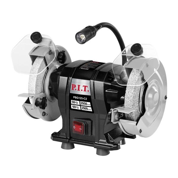 Станок точильный электрич., 200 Вт, 2950 об/мин, Ø125х12,7х16 мм, LED, пылезащита PIT PBG125-C2, описание:
