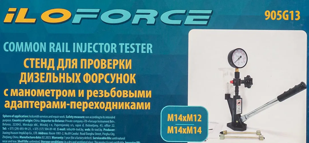 Стенд для проверки дизельных форсунок с манометром и резьбовыми адаптерами-переходниками М12хМ12, М12хМ14 ILOforce IF-905G13