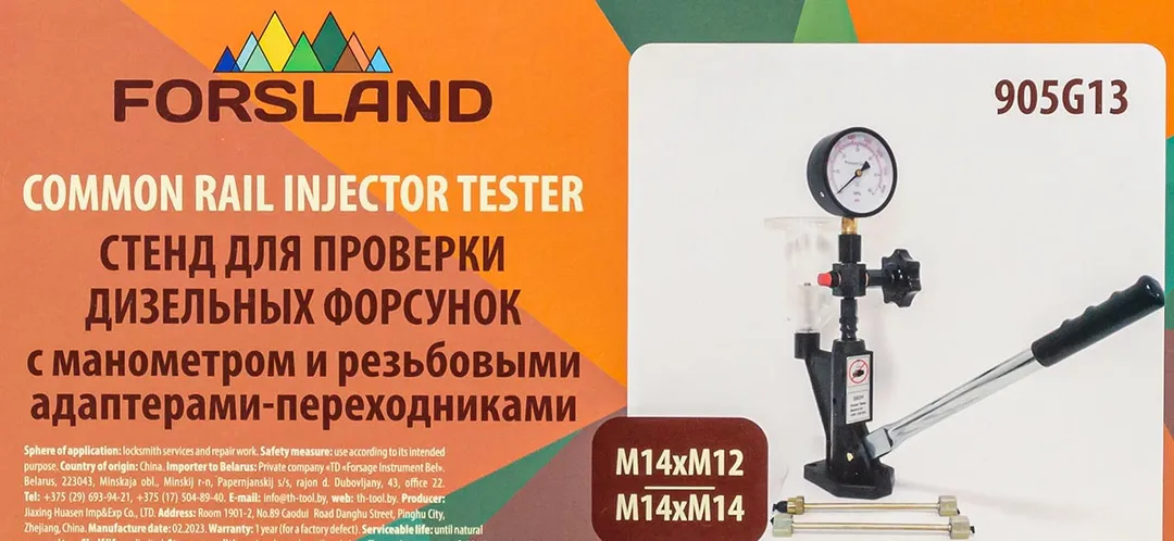 Стенд для проверки дизельных форсунок с манометром и резьбовыми адаптерами-переходниками М12хМ12, М12хМ14 Forsland Forsland-905G13