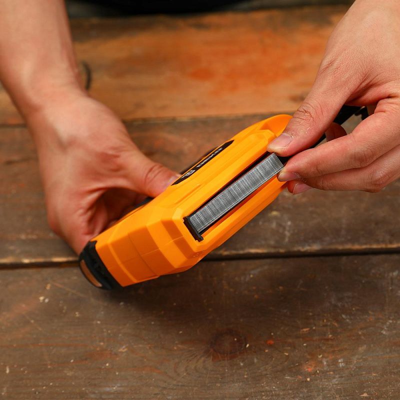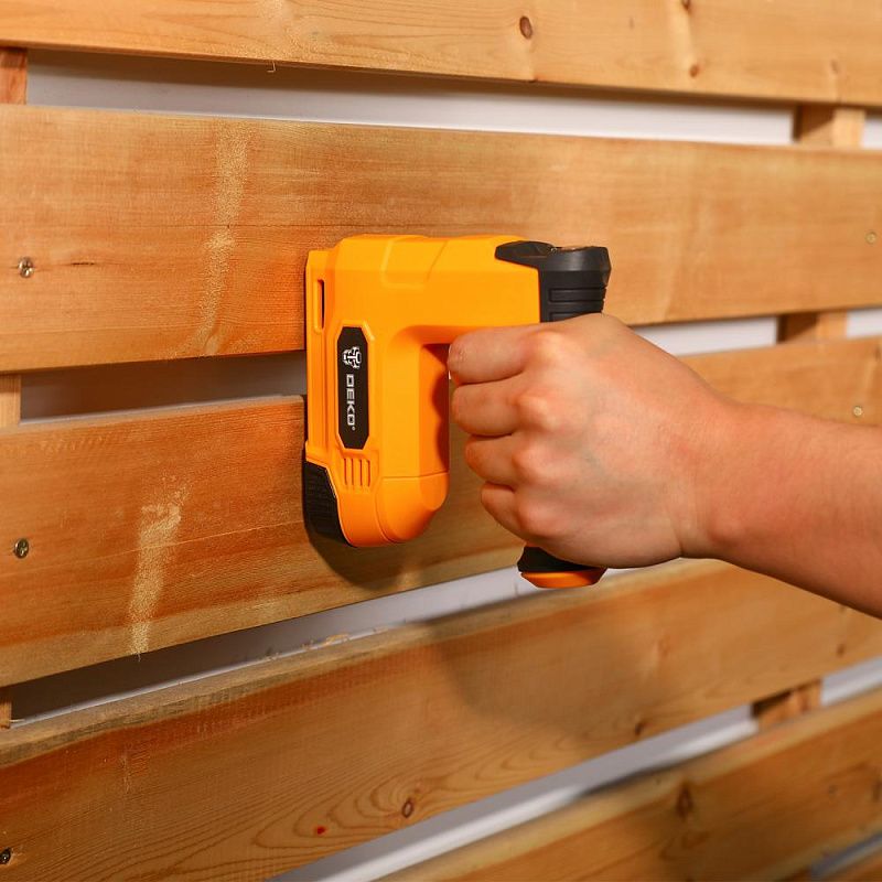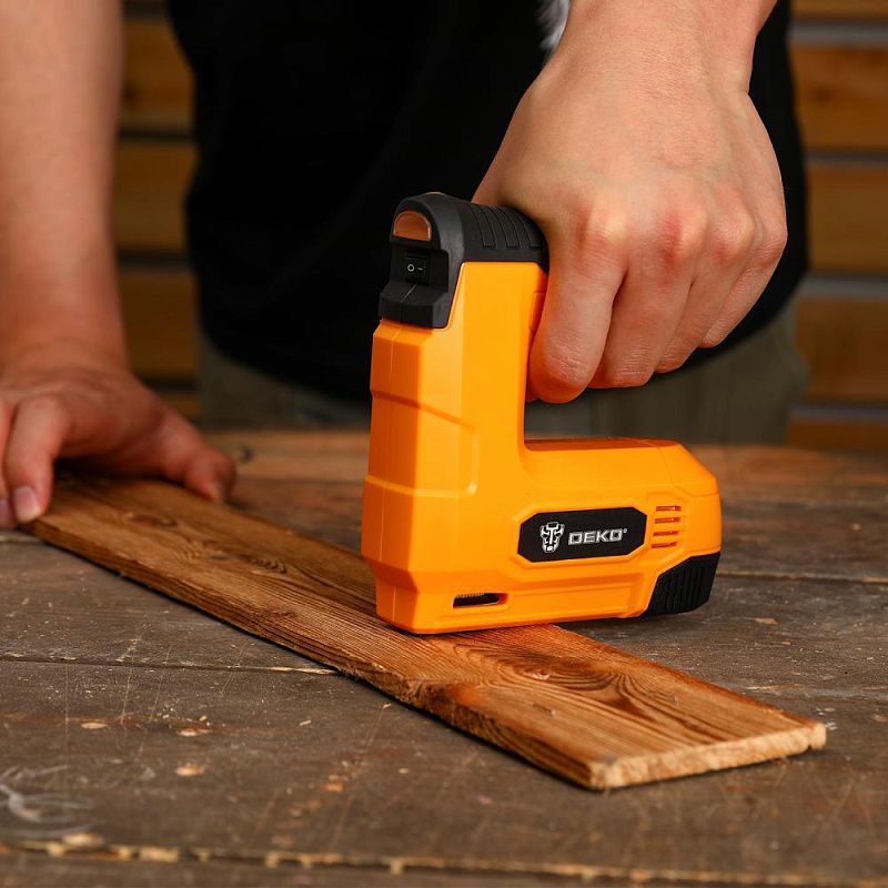 - Степлер аккумуляторный DEKODKES3.6-Li, 1х1.5Аh предназначен для крепления тонких деревянных деталей, деталей из масонита или других материалов, требующих надежной фиксации.