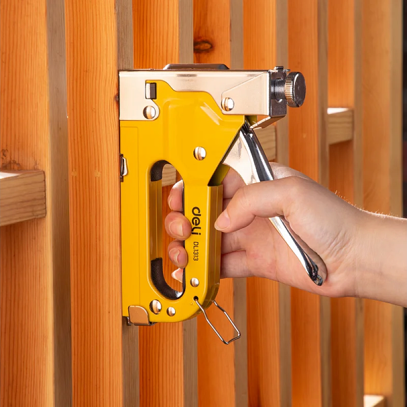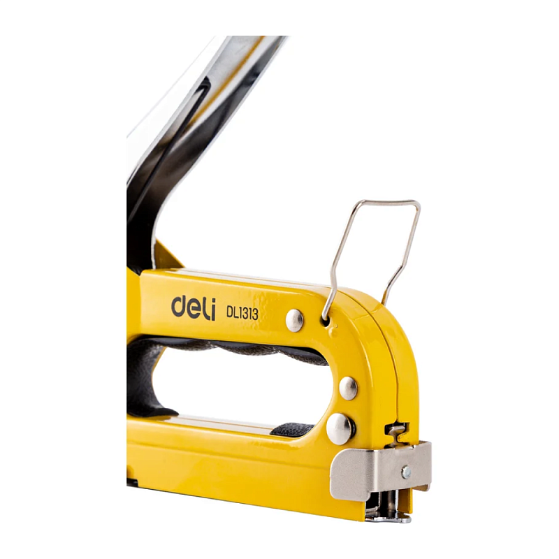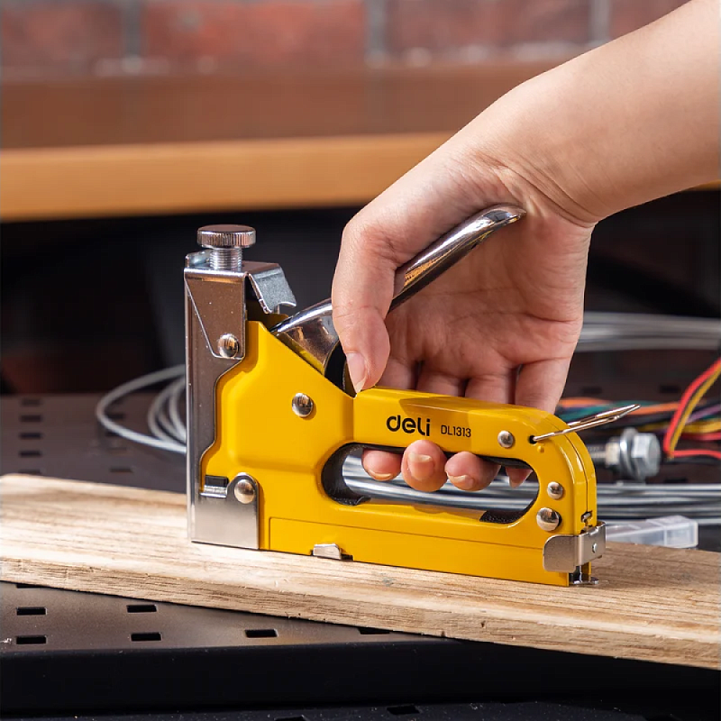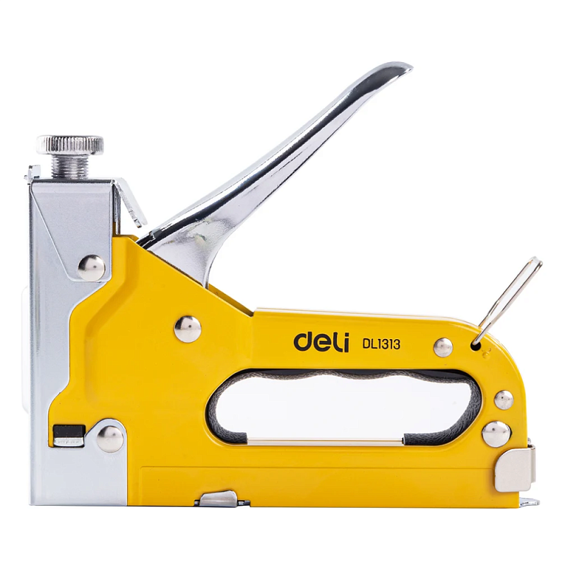 Строительный степлер Deli DL1313 - это мощный и надежный инструмент, который используется в строительстве и ремонте для крепления различных материалов, таких как дерево, ткань, пластик и многие другие.