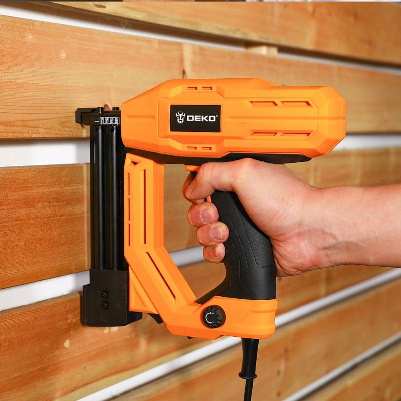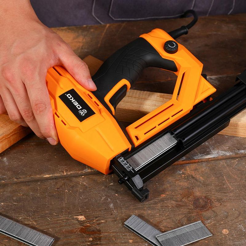 - Степлер электрический DEKO DKES600 предназначен для крепления тонких деревянных деталей, деталей из масонита или других материалов, требующих надежной фиксации.