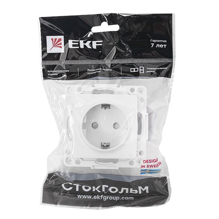 Стокгольм Механизм Розетки 1-местной с/з 16А автоматические клеммы белый с защ, штор, EKF PROxima EYR16-028-10, технические характеристики: