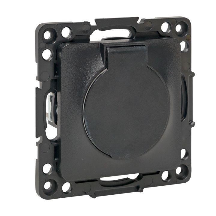 Стокгольм Механизм Розетки 1-местной с/з 16А черный с крышкой и защ, штор, IP44 EKF PROxima EZR16-028-10-44, технические характеристики: