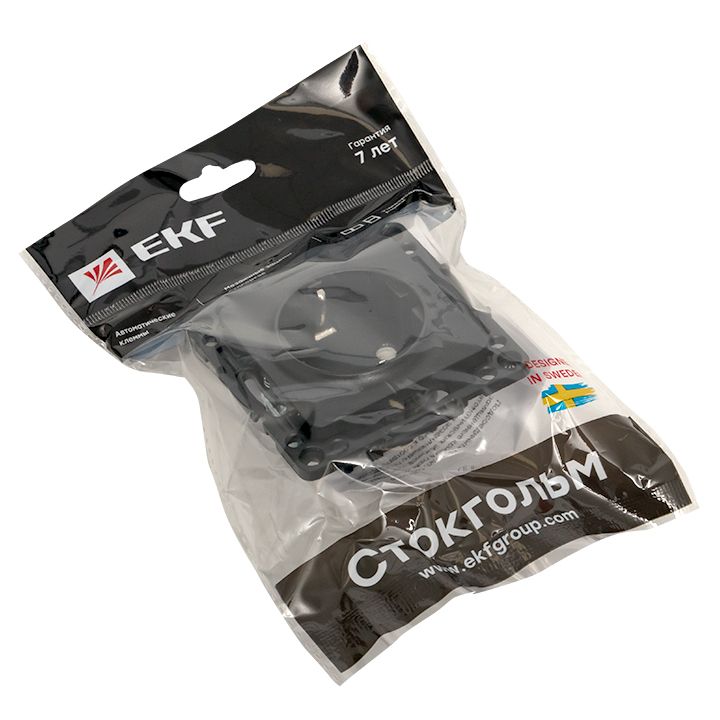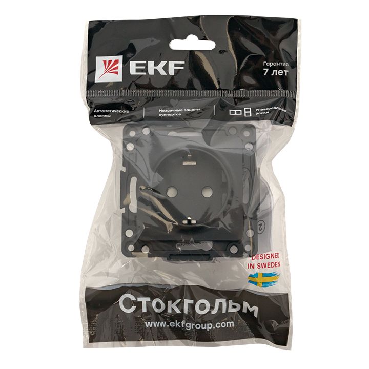 Стокгольм Механизм Розетки 1-местной с/з 16А в/к черный с защ, штор, EKF PROxima EZR16-028-20, технические характеристики:
