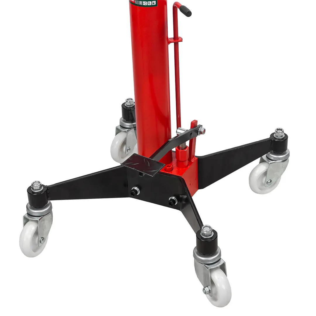 Стойка трансмиссионная гидравлическая г/п 1500 кг. Применяется для монтажа или демонтажа КПП и также всевозможных элементов выхлопной системы, защиты поддона картера. Благодаря этому устройству можно эффективно проводить работы по починке автомобилей на станциях технического обслуживания. Подъем осуществляется при помощи ножного насоса, опускание путем откручивания клапана вручную. Подъем и опускание дозировано с предельной точностью. Технические характеристики: Минимальная высота подъема: 1130 мм. Максимальная высота подъема: 1915 мм. Грузоподъемность: 1500 кг Количество колес: 4 (четыре пластиковых колеса диаметром 10 см и толщиной 3см, поворотные ролики с шарикоподшипниками).Преимущества работы с нами