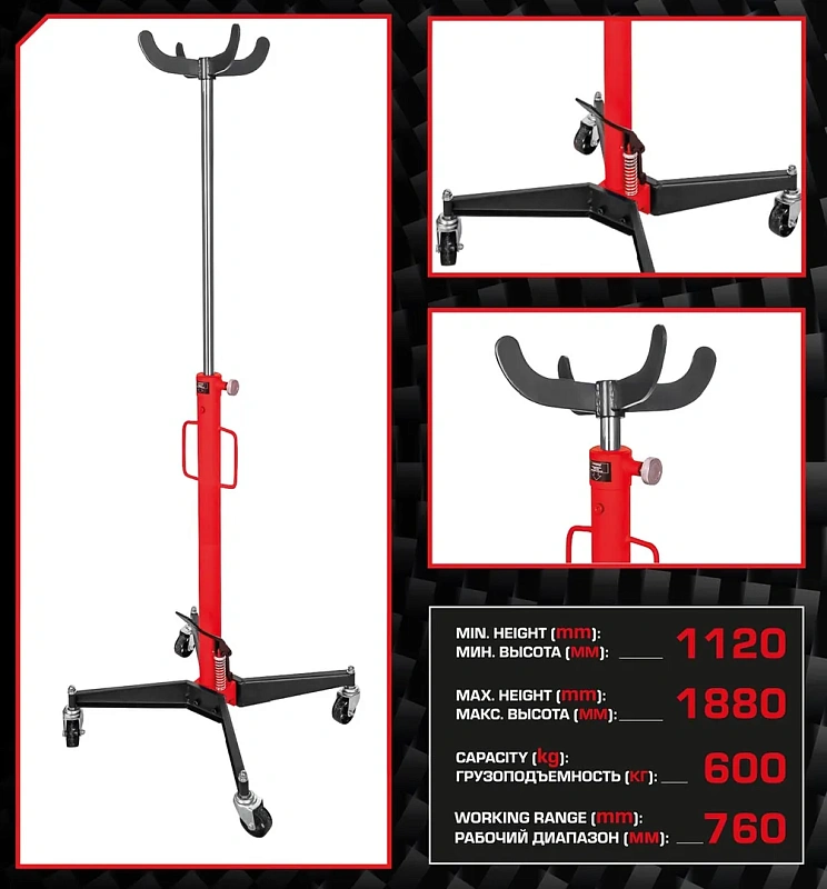 Стойка трансмиссионная гидравлическая 0,6 т, 1120-1880 мм EVERFORCE EF-TEL06011