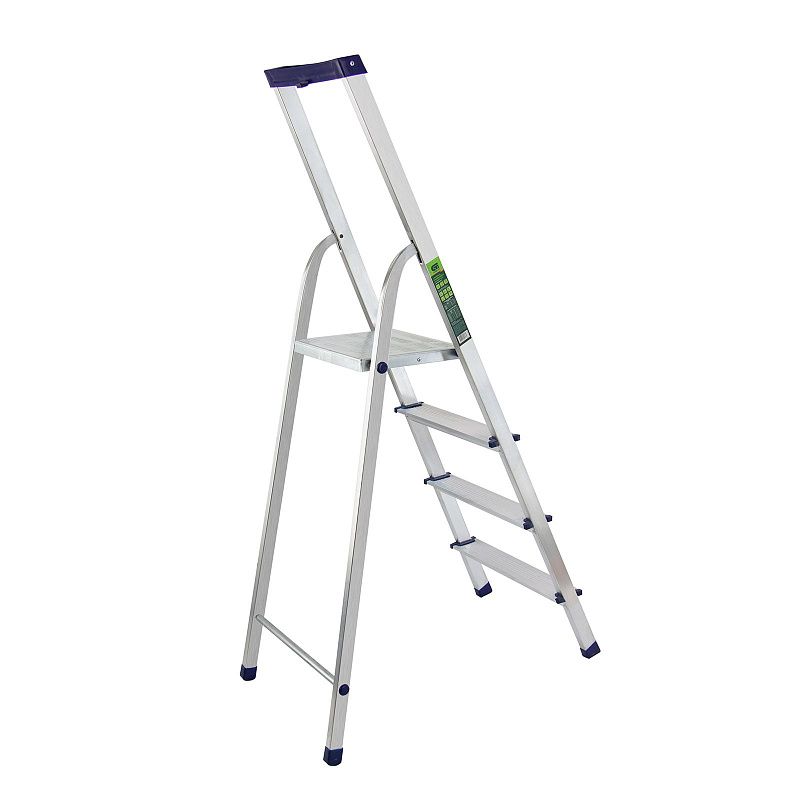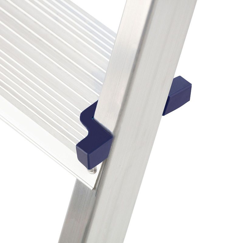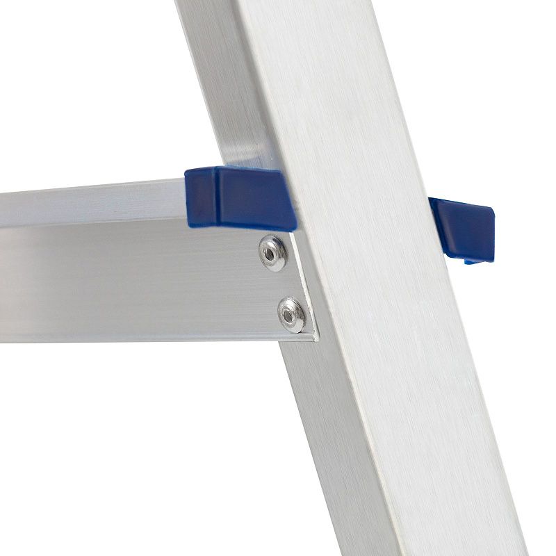 Устанавливать стремянку следует на ровную плоскость. Она не предназначена для работы с электроинструментом.