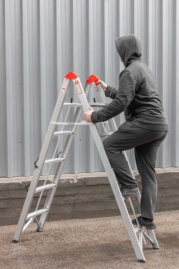Лестница стремянка складная алюминиевая с усиленной конструкцией предназначена для ремонтных, строительных и монтажных работ любой сложности. Стремянка отличается высокой прочностью и выдерживает вес до 150 кг. Складная неразборная лестница высотой 1,80 м позволяет выполнять работы на различных уровнях. Противоскользящие накладки на ножках обеспечивают устойчивость и безопасность. Стремянка на 5 ступени оснащена фиксатором для защиты от складывания при работе. Изготовлена из алюминиевого сплава высокой прочности, обладающего коррозийной стойкостью. Двухсекционная устойчивая конструкция не требует дополнительных условий и применима при любой работе. Занимает мало места для храненияПреимущества работы с нами