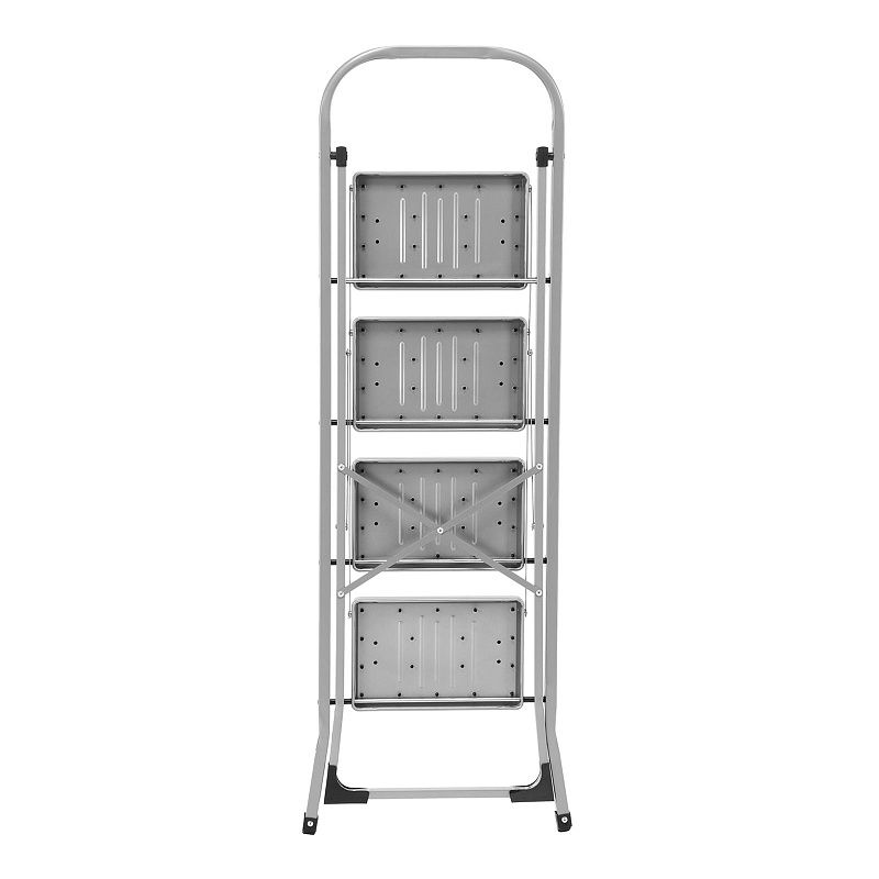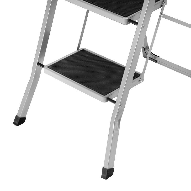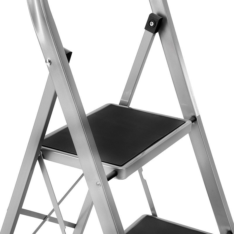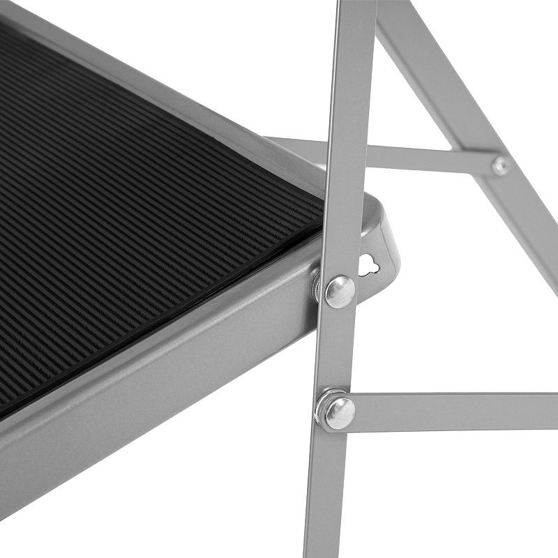 - Удобное хранение — за счет толщины в сложенном виде 4,5 см стремянка не занимает много места.