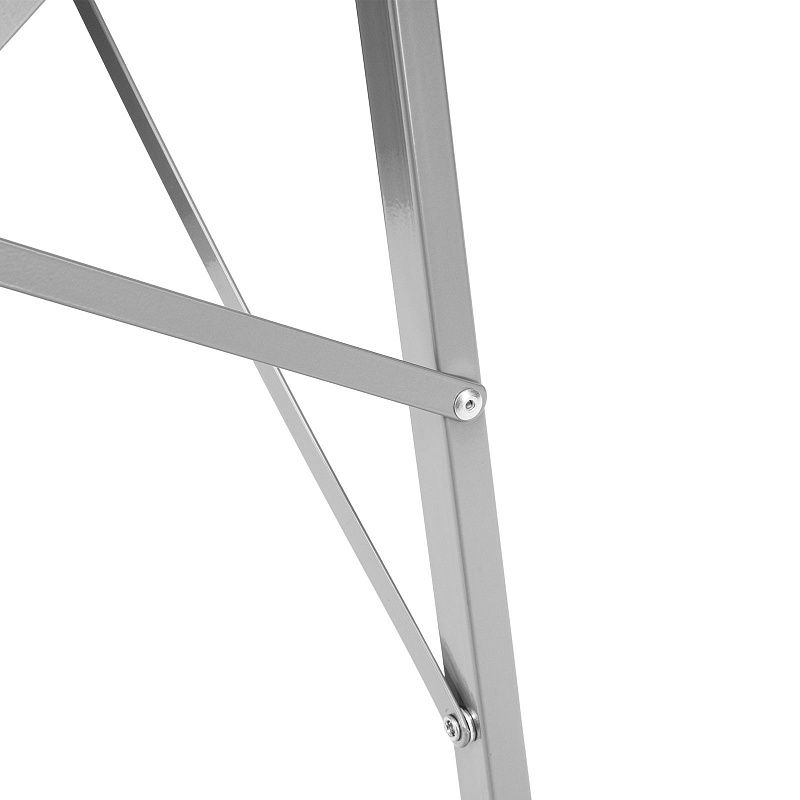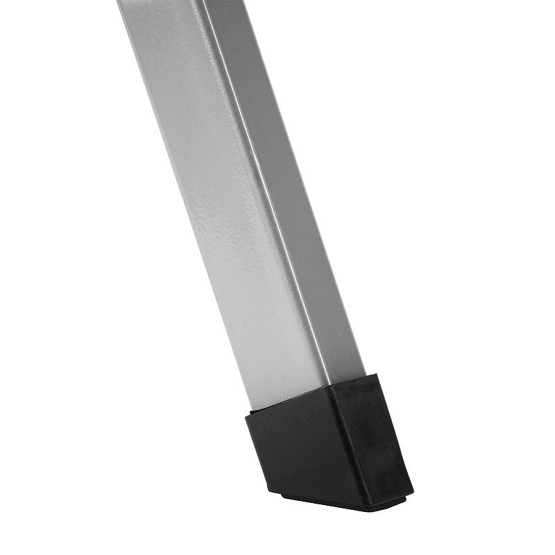- Прочная конструкция — стремянка изготовлена из стального профиля и снабжена надежным механизмом раскладывания, поэтому выдерживает нагрузку до 150 кг.