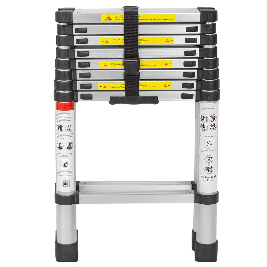Лестница стремянка телескопическая алюминиевая 2,6 м от бренда FORSAGE. Максимальная нагрузка: 150 кг. Состоит из двух секций: максимальная высота одной секции 2,6 м на 9 ступенек. Конструкция: лестница трансформер, складная, неразборная. Двухстороннее восхождение с возможностью регулировки высоты подъема. Противоскользящие накладки на ножках обеспечивают устойчивость и безопасность. Оборудована крепежным ремнем для фиксации ступенек. Оснащена фиксатором для защиты от складывания при работе. Изготовлена из алюминиевого сплава высокой прочности, обладающего коррозийной стойкостью. Применяется для проведения ремонтных, строительных и монтажных работ любой сложности. Компактные размеры в сложенном виде (для удобства хранения и транспортировки). Надежная конструкция в сочетании с высокопрочным металлом.Преимущества работы с нами