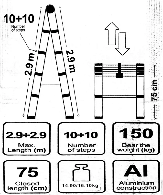 Стремянка телескопическая алюм. бытовая 2.9м 10+10 ступ. Scheppach Sch-UP290-2