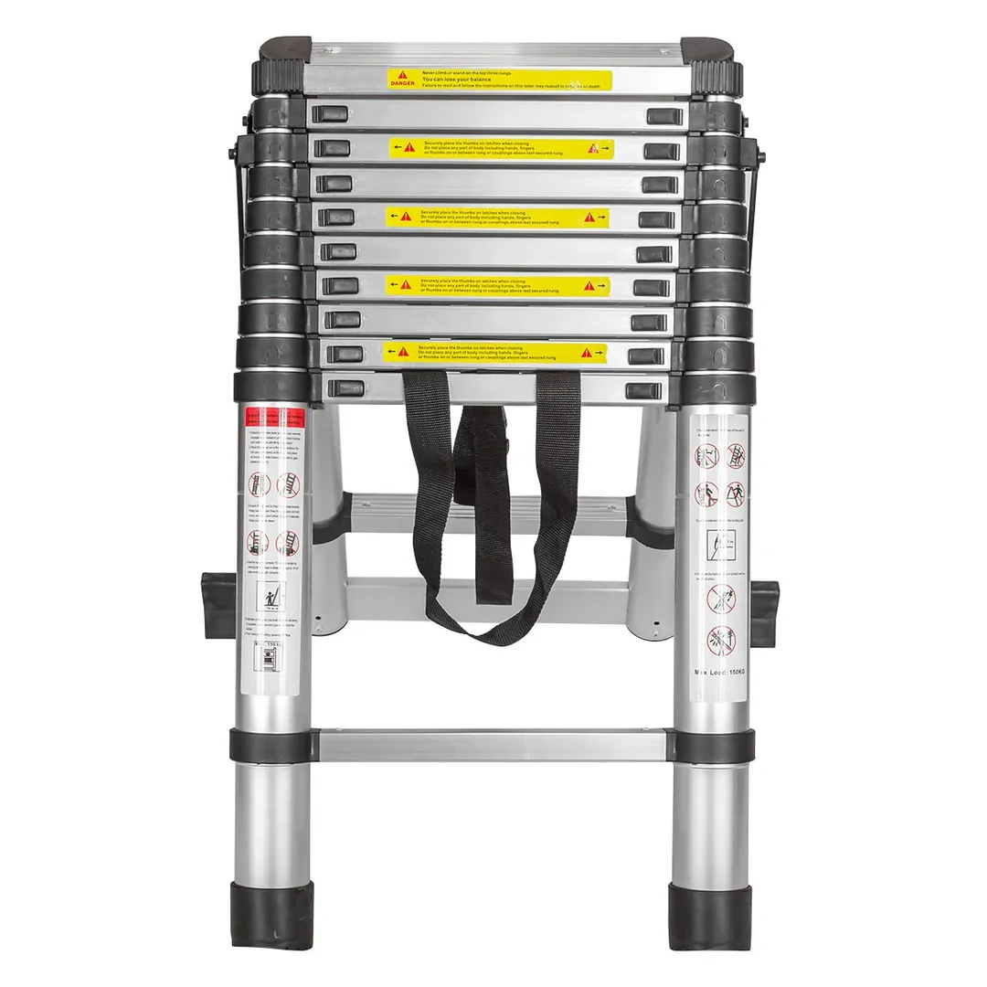 Лестница стремянка телескопическая алюминиевая, максимальная нагрузка: 150 кг. Состоит из двух секций: максимальная высота одной секции 3,2 м на 11 ступенек. Конструкция: лестница трансформер, складная, неразборная. Двухстороннее восхождение с возможностью регулировки высоты подъема. Противоскользящие накладки на ножках обеспечивают устойчивость и безопасность. Оборудована крепежным ремнем для фиксации ступенек. Оснащена фиксатором для защиты от складывания при работе. Изготовлена из алюминиевого сплава высокой прочности, обладающего коррозийной стойкостью. Применяется для проведения ремонтных, строительных и монтажных работ любой сложности. Компактные размеры в сложенном виде (для удобства хранения и транспортировки). Надежная конструкция в сочетании с высокопрочным металлом.Преимущества работы с нами
