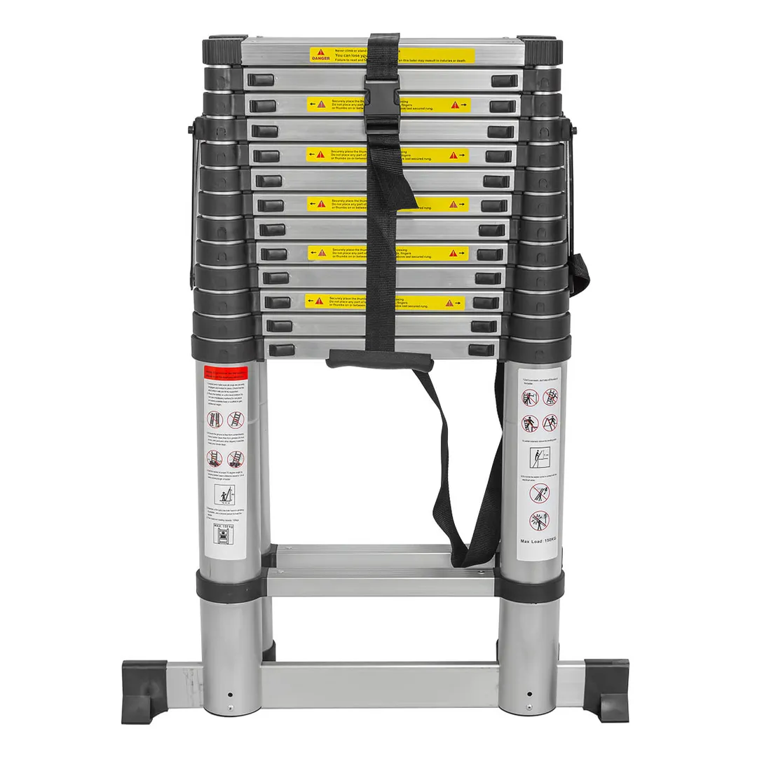Лестница стремянка телескопическая алюминиевая, максимальная нагрузка: 150 кг. Состоит из двух секций: максимальная высота одной секции 4.1 м на 14 ступенек. Конструкция: лестница трансформер, складная, неразборная. Двухстороннее восхождение с возможностью регулировки высоты подъема. Противоскользящие накладки на ножках обеспечивают устойчивость и безопасность. Оборудована крепежным ремнем для фиксации ступенек. Оснащена фиксатором для защиты от складывания при работе. Изготовлена из алюминиевого сплава высокой прочности, обладающего коррозийной стойкостью. Применяется для проведения ремонтных, строительных и монтажных работ любой сложности. Компактные размеры в сложенном виде (для удобства хранения и транспортировки). Надежная конструкция в сочетании с высокопрочным металлом.Преимущества работы с нами