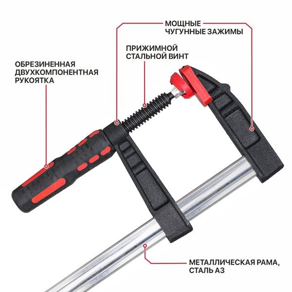 - Зажимы изготовлены из мощного ковкого чугуна