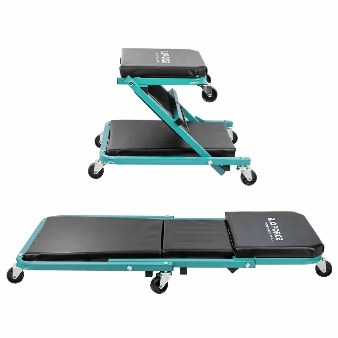 Стул-лежак подкатной ремонтный для авто подходит для автомобильных сервисов, гаражей, а также для домашнего использования. Лежак является трансформером и может использоваться как в сложенном, так и в разложенном виде. Он изготовлен из прочного материала, что гарантирует долговечность и надежность. Оснащен шестью колесами, которые делают перемещение легким и свободным. Размеры лежака составляют 910х410х120 мм., а нагрузка - 150кг, что позволяет использовать его для различных типов автомобилей. Размеры стула - 460х410х360 мм, а нагрузка - 120 кг. Диаметр колеса - 50 мм. За счет мягкого поролонового наполнения, конструкция лежака обеспечивает удобство и комфорт при проведении ремонтных работ.Преимущества работы с нами