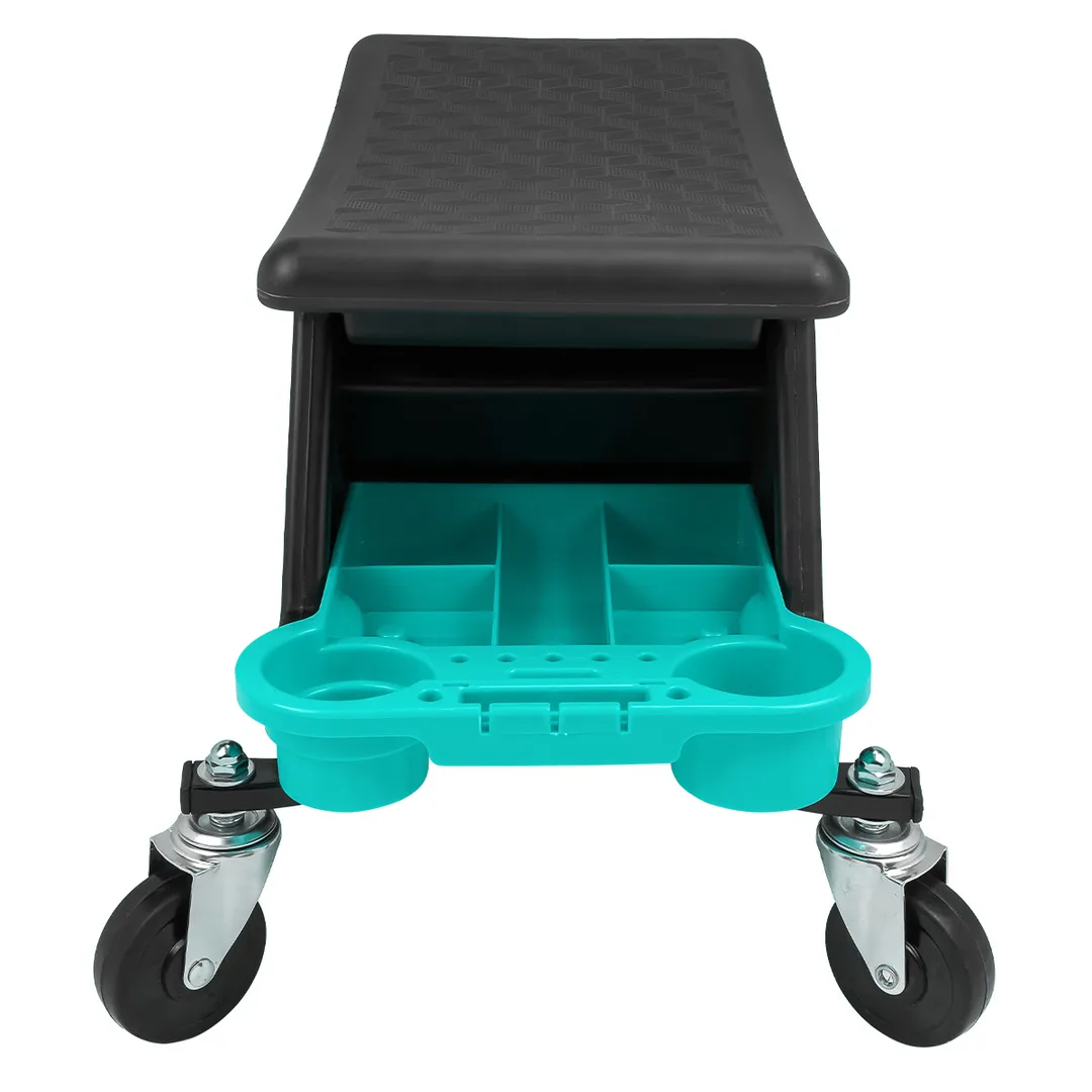 Стул пластиковый передвижной разработан для мастерских, автомастерских, СТО, гаражей, личного использования. Удобное сиденье изогнутой формы. Комфорт при выполнении долгих и сложных работ. Комплектуется ложементом и выдвижным ящиком для хранения инструментов и запчастей - все необходимое всегда под рукой. Качественное и комфортное место для выполнения работ в сидячем положении. Хорошая маневренность стула за счет поворотных колес на подшипниках. Фиксатор - тормоз на паре колес. Максимальная нагрузка до 130 кг. Высота стула 375мм Размеры сиденья 450х250мм Размеры ложемента 260х250х50мм Размеры выдвижного ящика 225х210х125 мм.Преимущества работы с нами