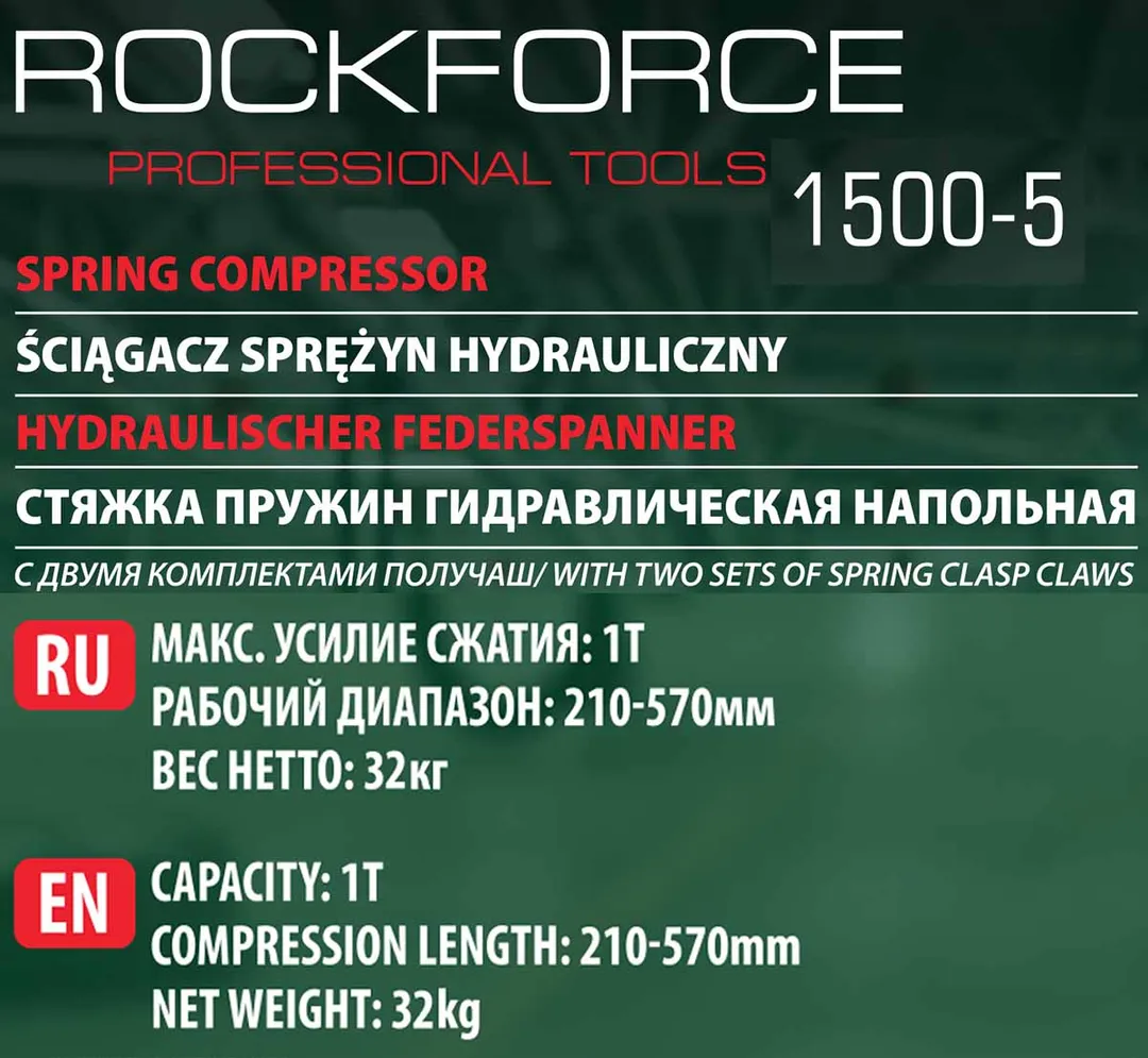 Стяжка пружин 1 т, 210-570 мм, гидравлическая напольная с двумя комплектами получаш RockForce RF-1500-5