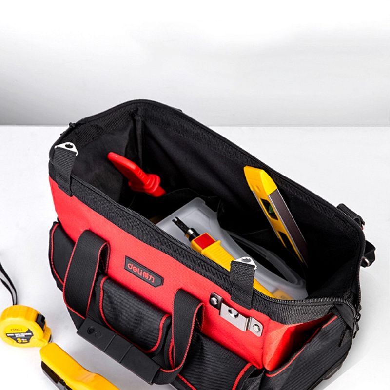Сумка для инструментов Deli RS DL430316, 380х210х280 мм, ткань Oxford, пластиковое дно, черный, красный
