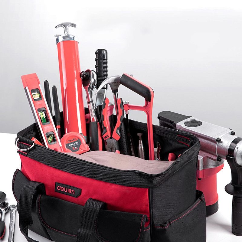 Сумка для инструментов Deli RS DL5862, 400х180х280 мм, ткань Oxford, черный, красный
