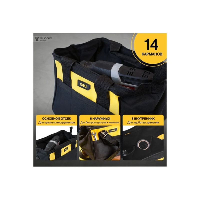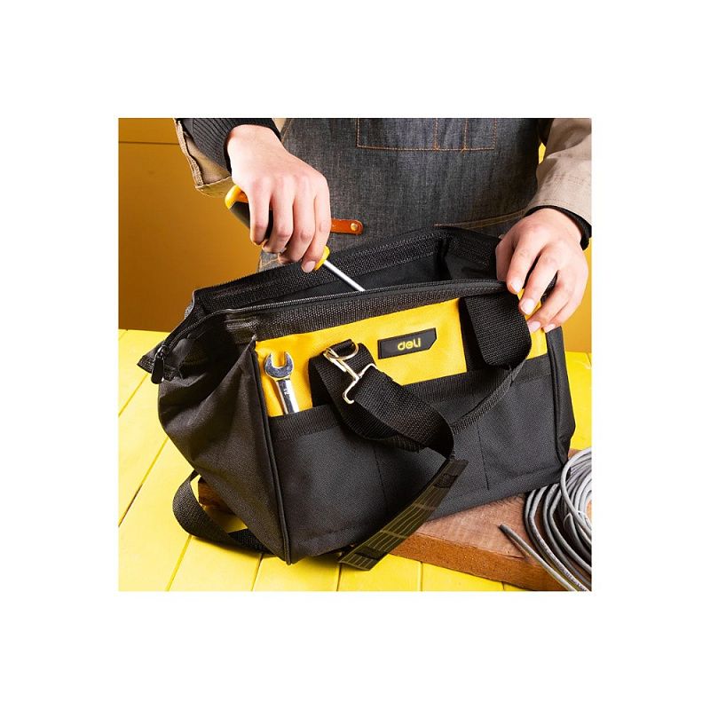 Сумка для инструментов Deli YS EDL-P1, 300х230х250 мм, ткань Oxford, черный, желтый
