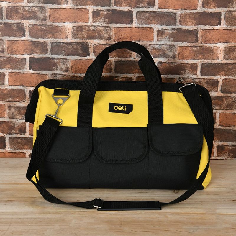Сумка для инструментов Deli YS EDL430018 используется для хранения и транспортировки инструмента, хранения малярных и отделочных инструментов, прекрасно подходит для похода на рыбалку и даже в качестве сумки для фитнеса.