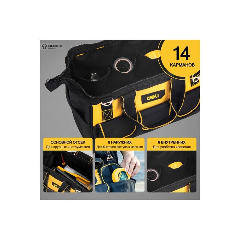 Сумка для инструментов Deli YS EDL430116, 360х180х250 мм, ткань Oxford, черный, желтый
