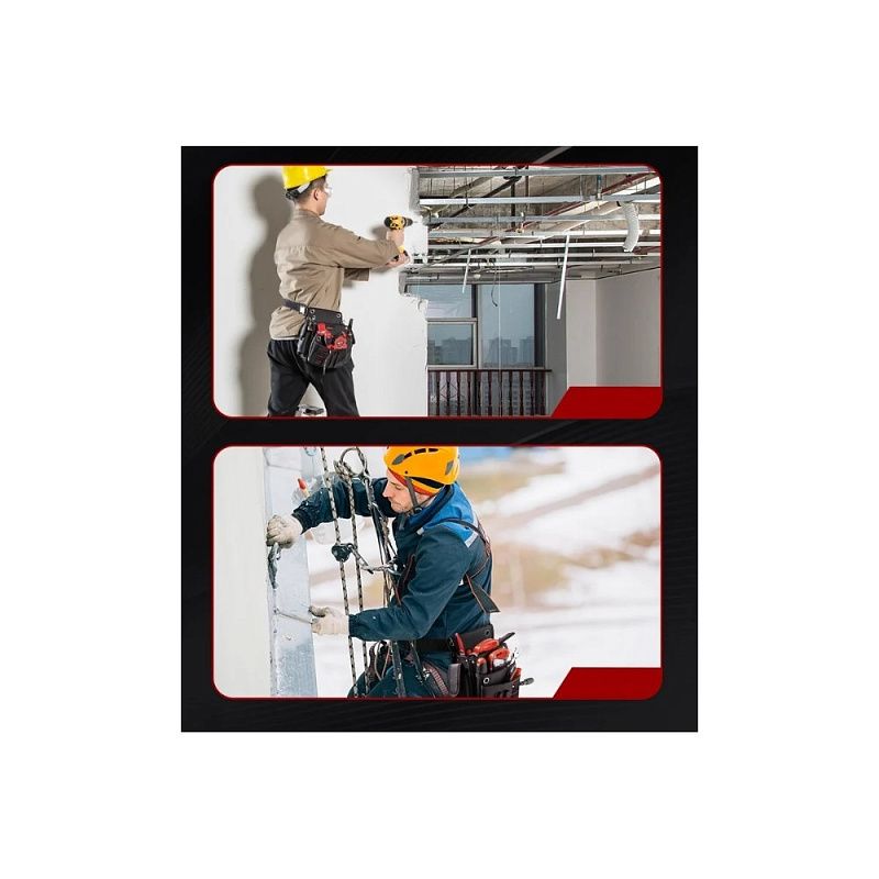 Поясная сумка монтажника, электрика для инструмента Deli RS EDL5865 с ремнем, 250x250x110 мм предназначена для хранения и переноски инструмента, который необходим при проведение строительных работ и поможет иметь весь необходимый инструмент под рукой, не отвлекаясь на его поиск.