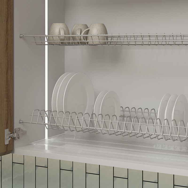 Сушка для посуды MOUNT-популярная классическая модель сушки для посуды с базовыми, но надежными характеристиками: - материал: сталь, - покрытие: полимерное порошковое, которое устойчиво к коррозии (испытано 72h в соляной камере), - цвета: холодный белый или светлый серый, - поддон (толщина 0,7 мм) для сбора капель и защиты дня кухонного ящика от разбухания в комплекте, - размеры: белые - под ящики шириной 400, 500, 600, 700, 800, 900 мм; серые - под ящики шириной 600, 700, 800 мм, - подходит для установки в ящик как с ДСП 18 мм, так и с ДСП 16 мм, - толстый несущий прут 4,9 мм в диаметре, основной прут - 2,9 мм, - простая и легкая установка, - возможность отдельно приобрестидержателии дополнительныйподдон(белый либо прозрачный). Количество мест для тарелок: -400 - 14 мест, -500 - 19 мест, -600 - 24 места, -700 - 29 мест, -800 - 34 места, -900 - 39 мест. В комплекте: -сушка для чашек (холодный белый) - 1 шт, -сушка для тарелок (холодный белый) - 1 шт, -пластиковый поддон (холодный белый) - 1 шт, -пластиковый держатель (холодный белый) - 8 шт, -брендированная инструкция AKS - 1 шт.Технические характеристики: