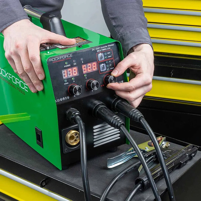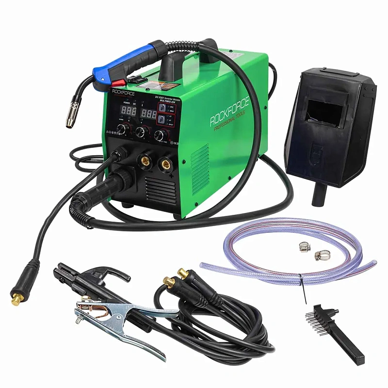 Сварочный аппарат 5.7кВт, 230В, Ø электрода 1.6-4 мм, Ø проволоки 0.6-1 мм, сварочный ток 40-224А RockForce RF-MULTIMIG-224, описание и характеристики: