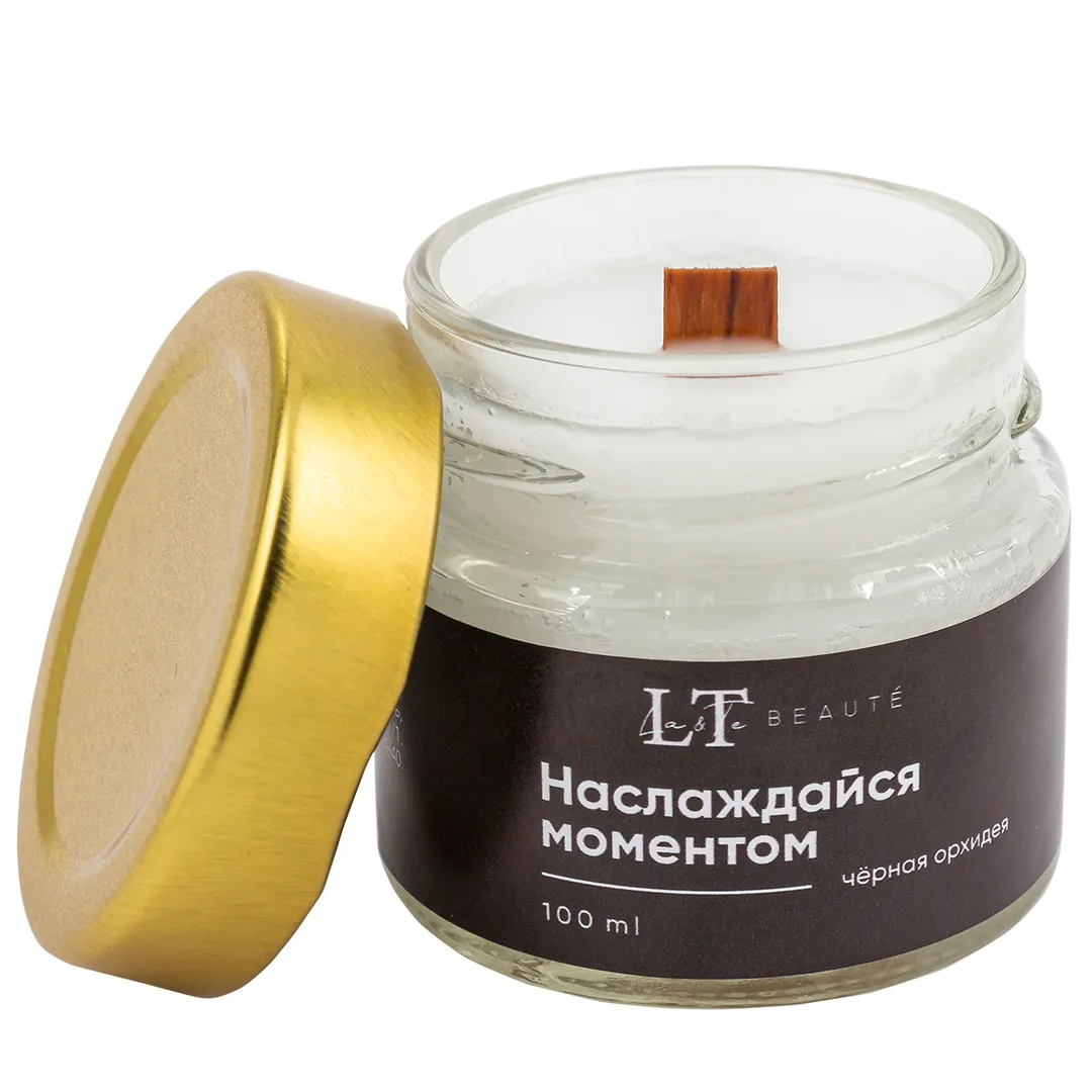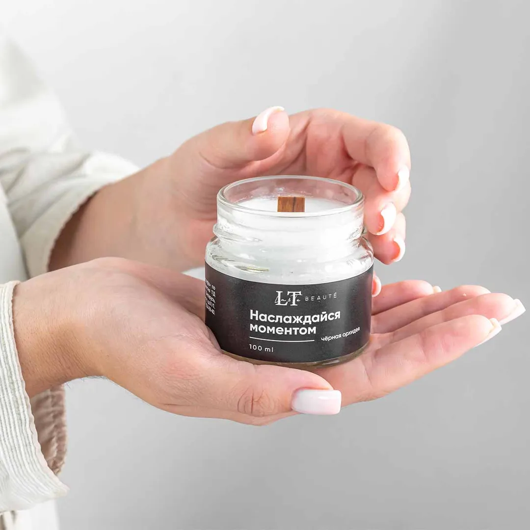 Свеча ароматизированная в стеклянной банке с крышкой 100 мл. Отдушка Черная Орхидея.