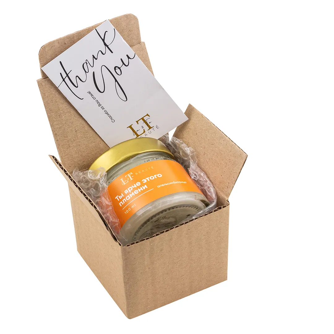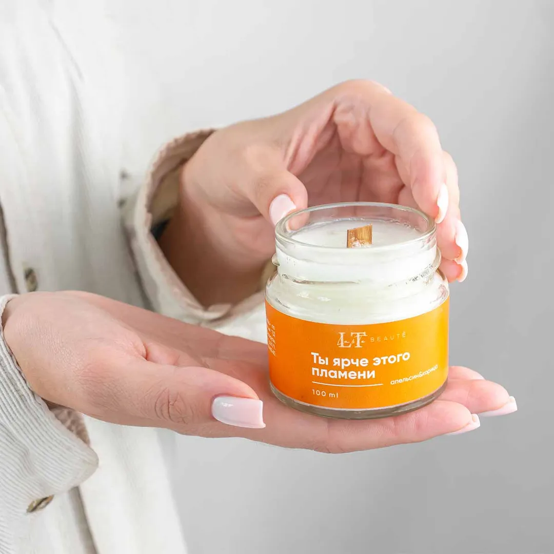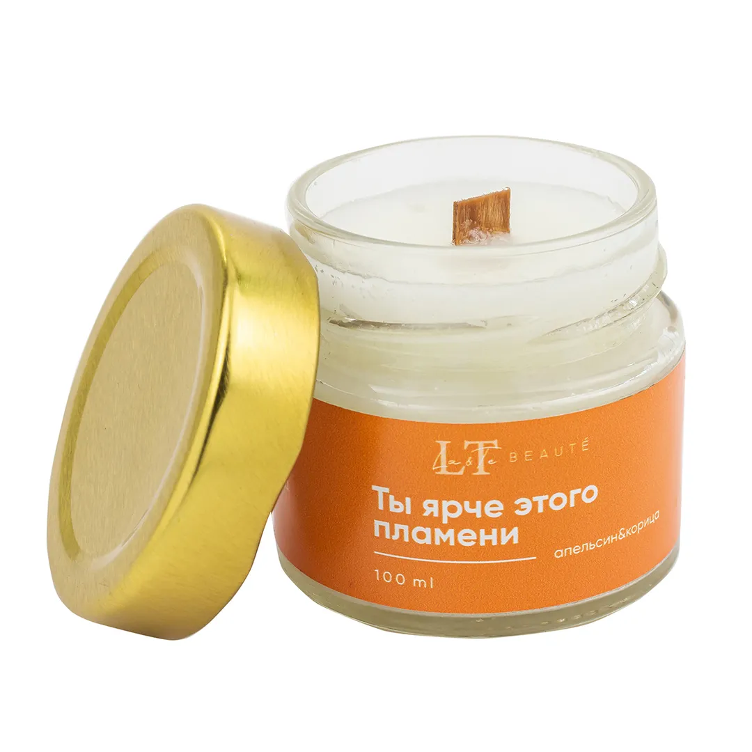 Свеча ароматизированная в стеклянной банке с крышкой 100 мл. Отдушка Корица и апельсин.
