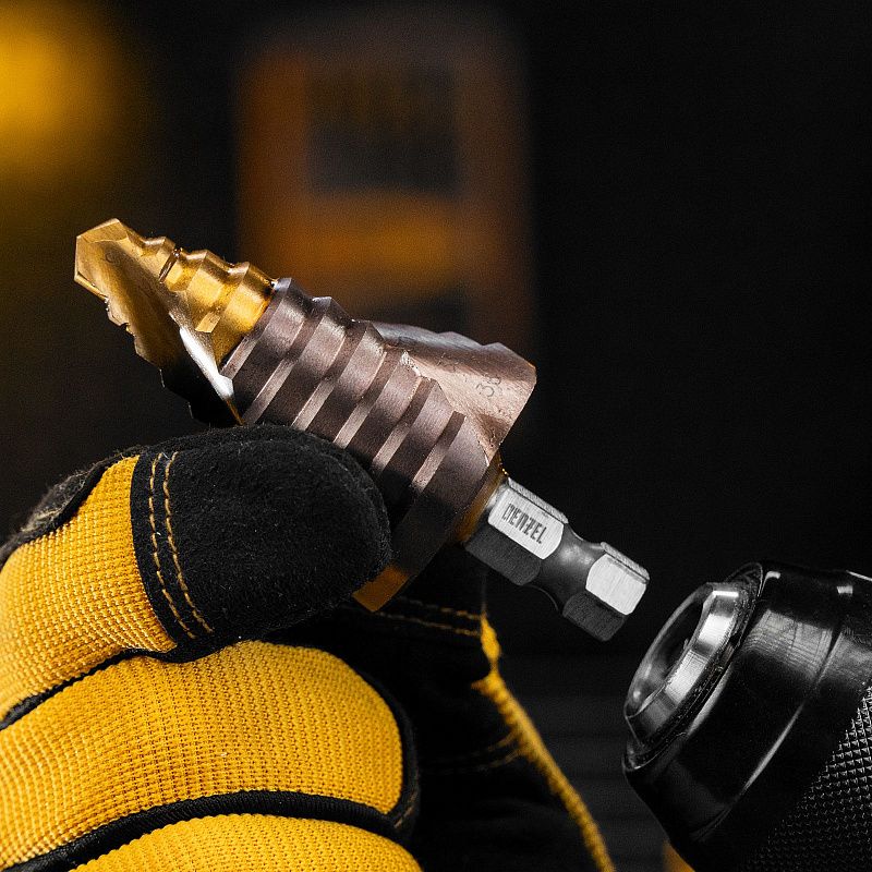 Ступенчатое сверло Denzel 723615 из стали P6M5K5, с 6-гранным хвостовиком, предназначено для сверления отверстий диаметром от 9 до 36 мм в сталях, цветных металлах и пластике. Избавляет от необходимости иметь при себе целый набор традиционных сверл. Позволяет получать отверстия с ровными краями и уже снятой фаской под гайку или болт. Оснастке присвоен класс точности A1. Сверло пригодится дома и в мастерской.