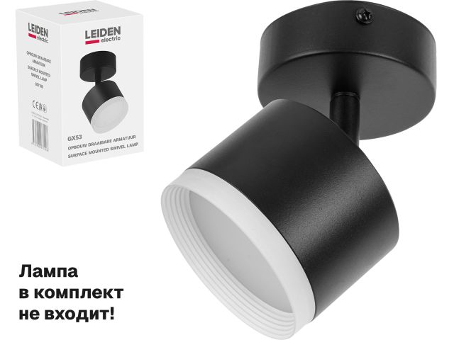 Светильник накладной поворотный/черный GX53 15 Вт LEIDEN ELECTRIC 807100