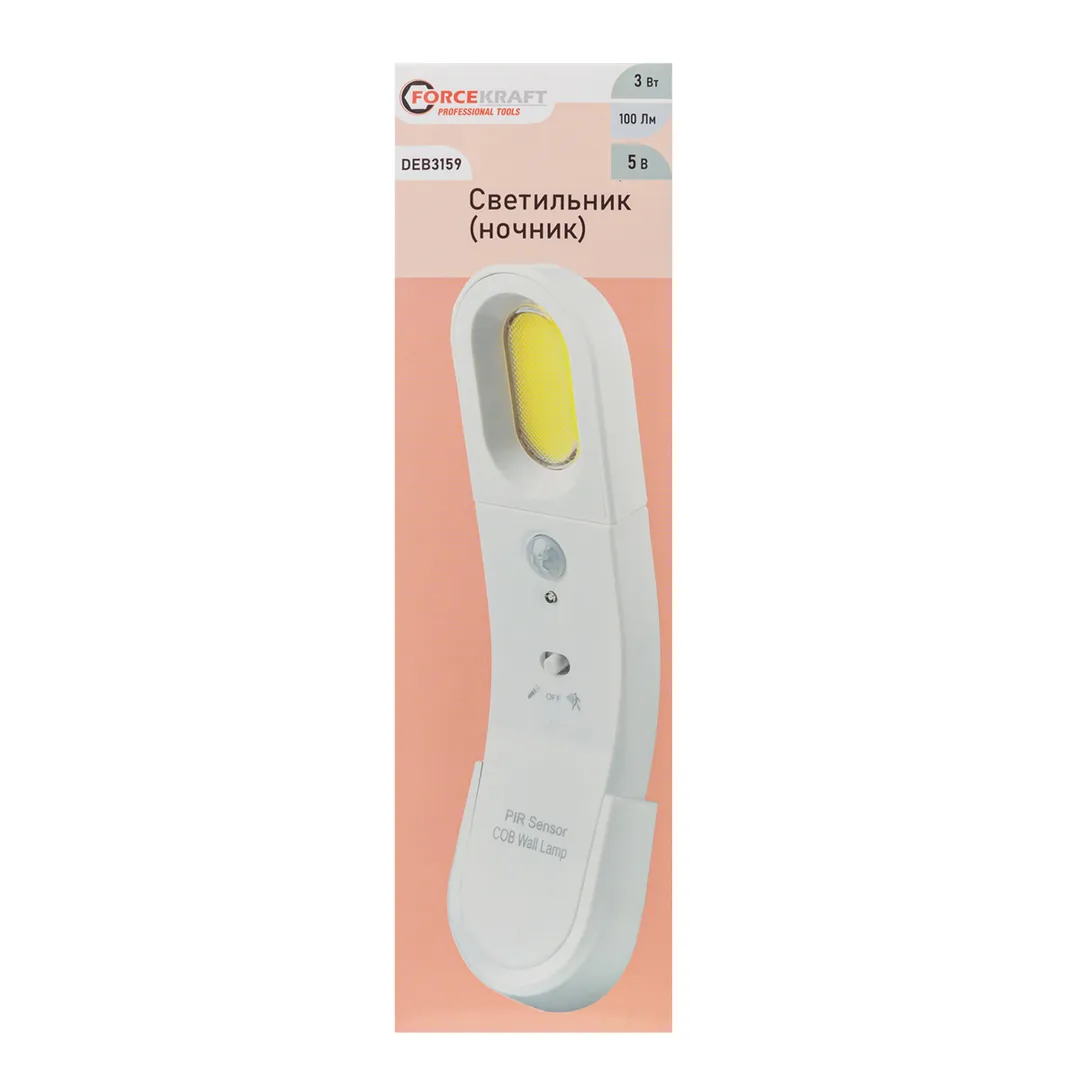 Светильник светодиодный "ночник", 5В, 3Вт, СОВ, 100Лм, 6000К, АААх3, датчик движ. ForceKraft FK-DEB3159, описание и характеристики: