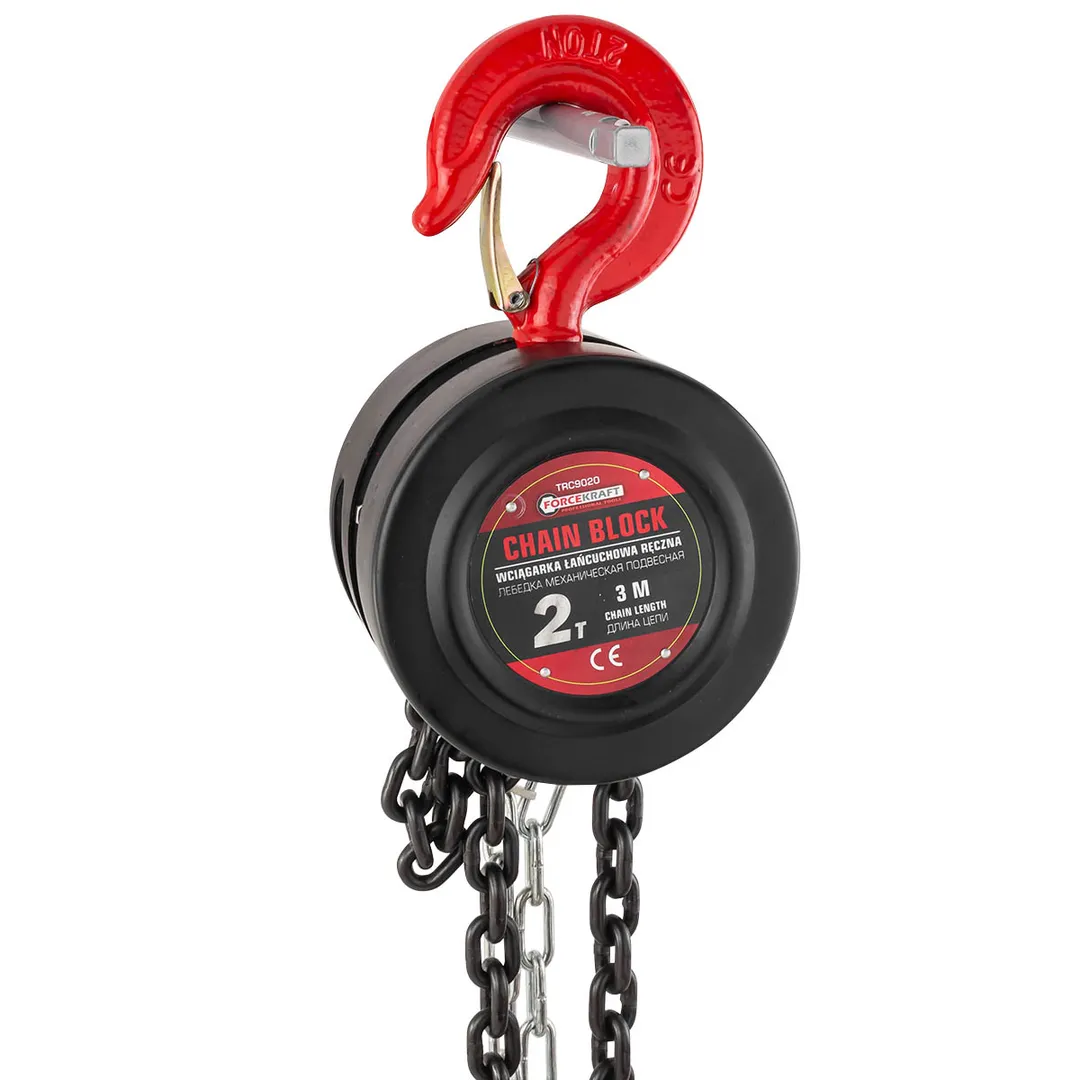 Таль механическая 2 т, цепная, с фиксацией цепи натяжения, L цепи 3 м ForceKraft FK-TRC9020