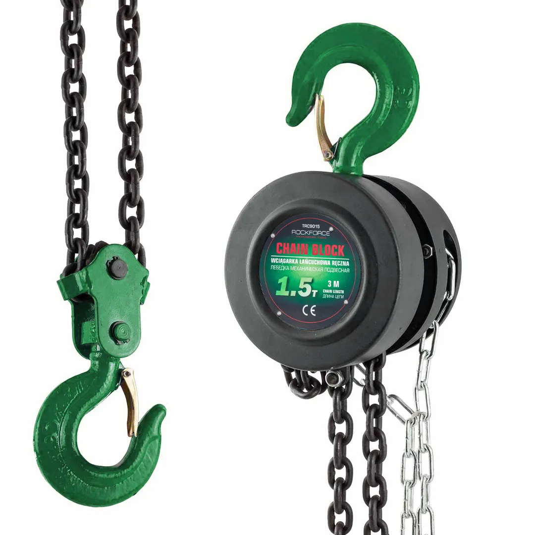 Таль механическая подвесная с фиксацией цепи натяжения 1.5 т, L цепи 2.5 м RockForce RF-TRC9015, описание и характеристики: