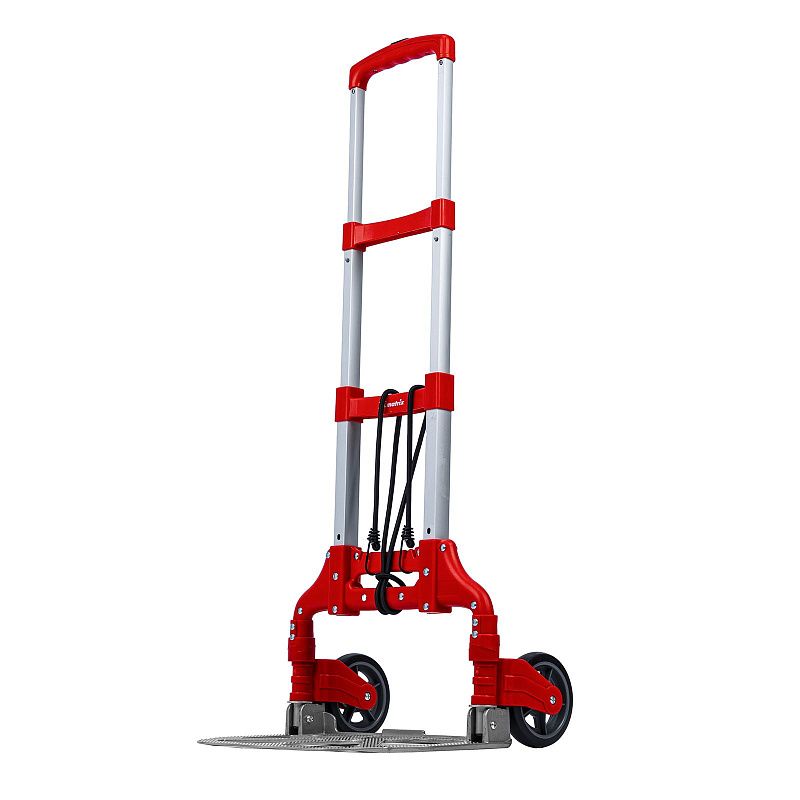 - Удобное хранение и транспортировка — платформа и колеса складываются, поэтому тележка не занимает много места.