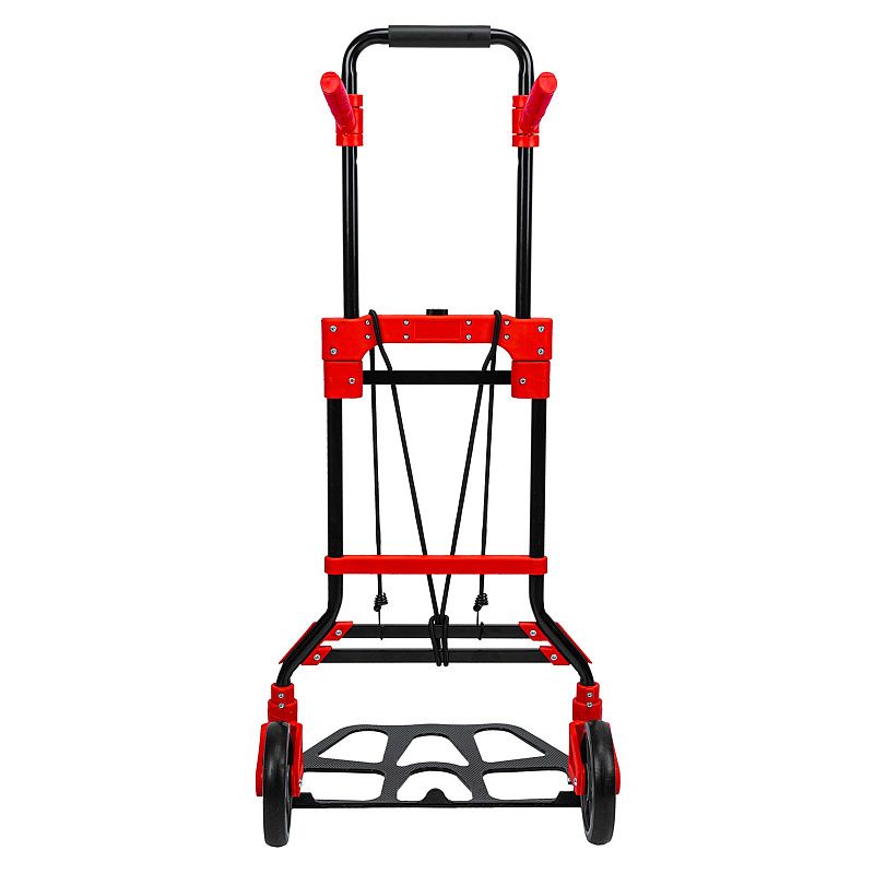 - Удобное хранение и транспортировка — платформа и колеса складываются, поэтому тележка не занимает много места.