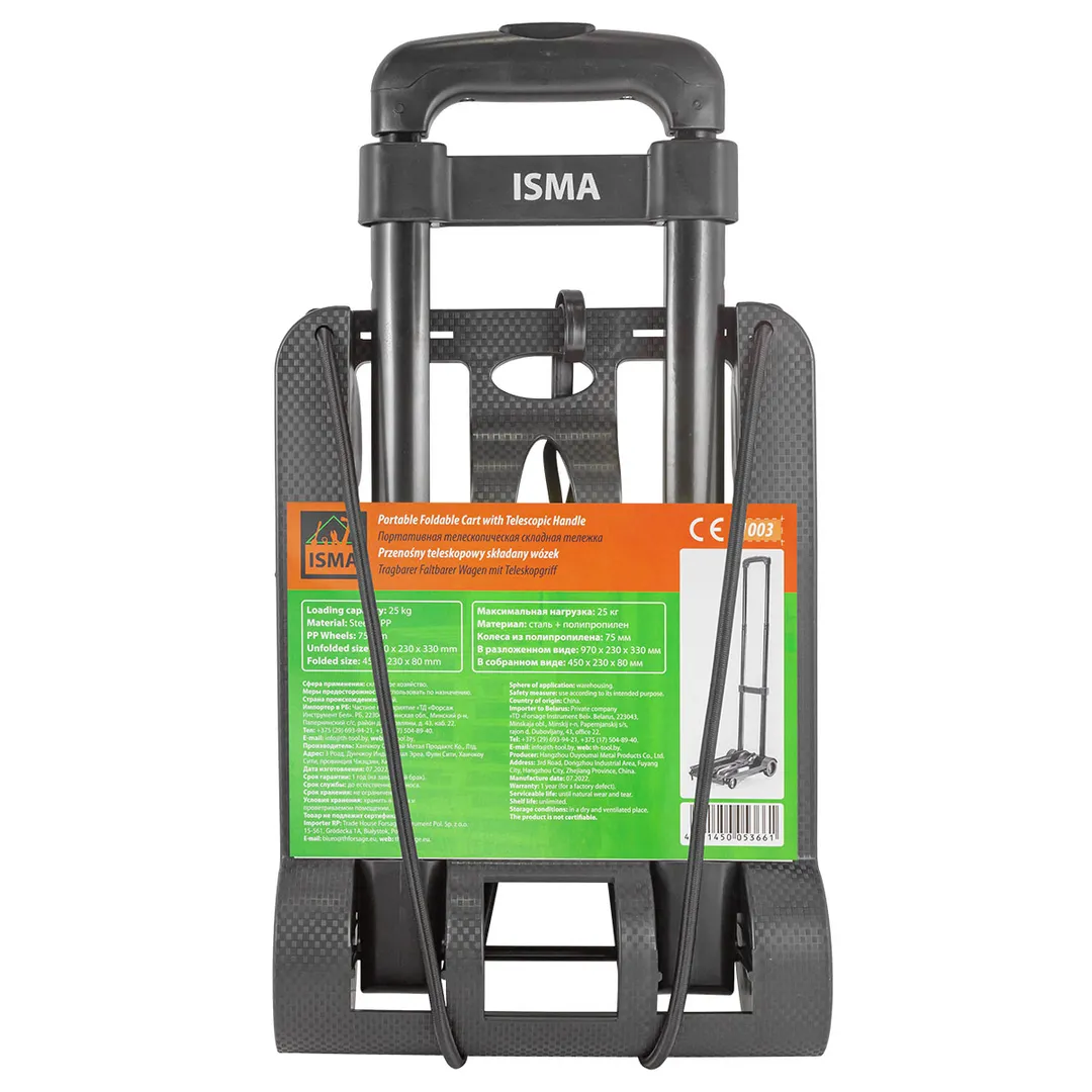 Тележка платформенная складная с телескопической ручкой, 230х330 мм, г/п 25 кг ISMA ISMA-1003